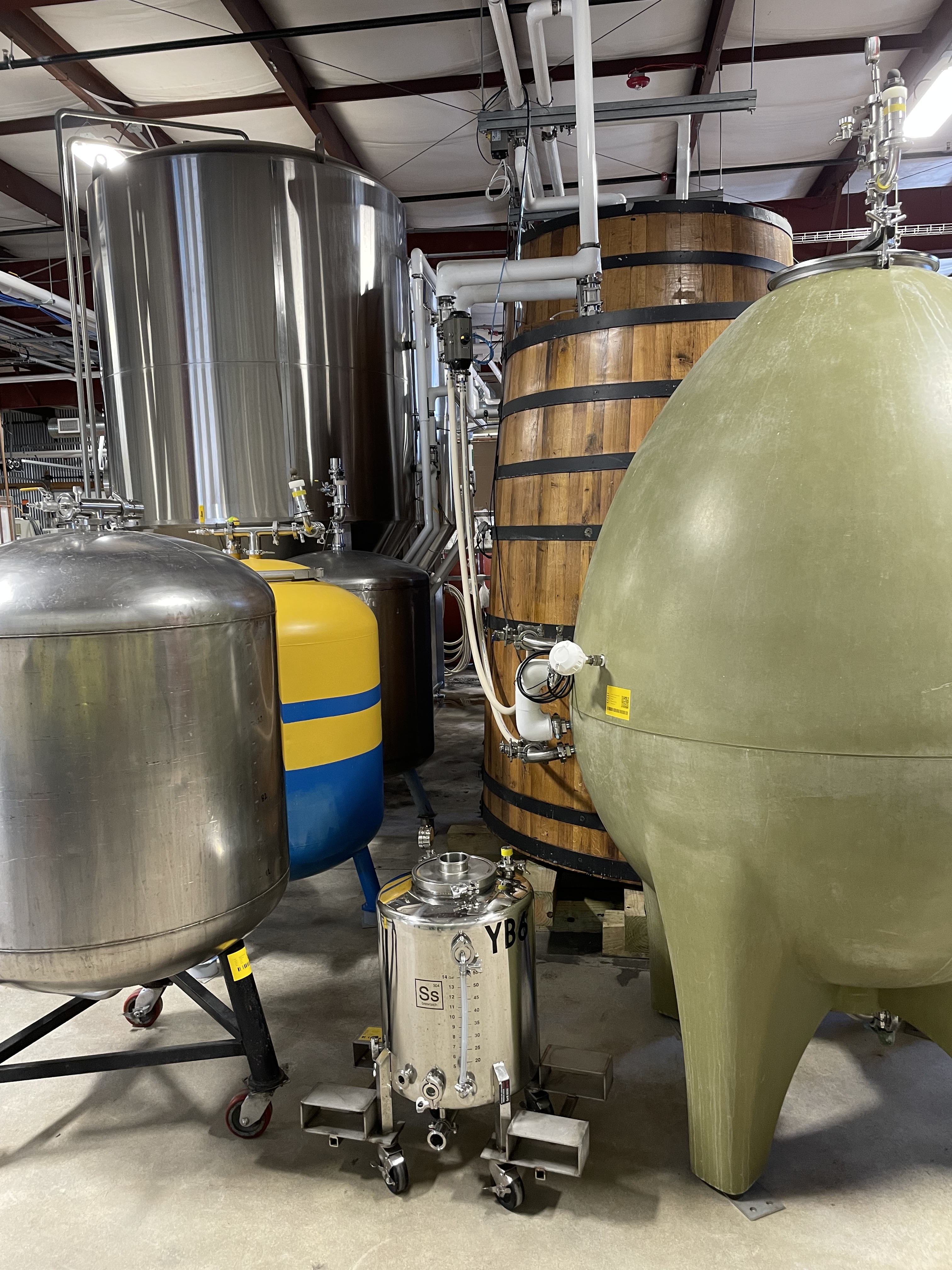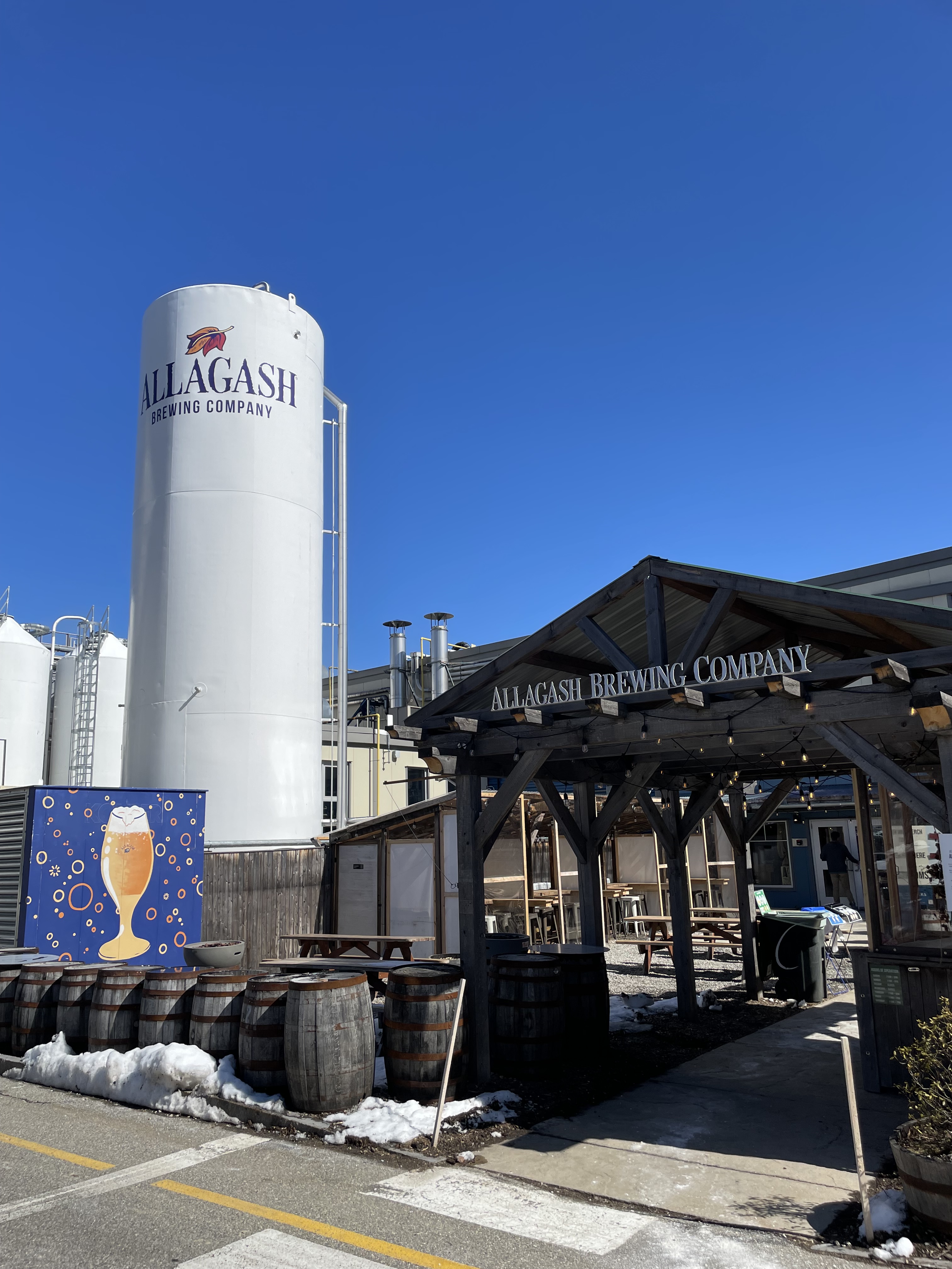 I also got an amazing tour of Allagash Brewing Co. with Branch Rothschild, head brewer, and Hannah Johnson, quality specialist. Allagash is one of the few breweries in the Brewer’s Association 2022 Top 20 Craft Breweries to brew in a single location only. Their massive facility has separate areas for their archetype “clean” beer and innovative “wild” beer. They have a variety of foudres and fermenting vessels, an extensive barrel room, and a coolship shed to capture wild Portland, Maine microflora for their coolship series. Allagash also has a really cool employee-initiated pilot program called From Maine, With Love® where employees submit recipe ideas, they vote on a few at a time, then brew it on a five-gallon homebrew system. They have SS Brewtech Unitanks to ferment the experimental beers that get served only at the brewery. If a beer is really popular and sells well, then it may be bottled or canned and sold for takeaway. The same homebrew-scale pilot system is used to create other experimental beers that end up in distribution across the country. Allagash is also committed to using Maine-grown craft malt, hops, and ingredients as much as possible, which makes for some delicious beer.