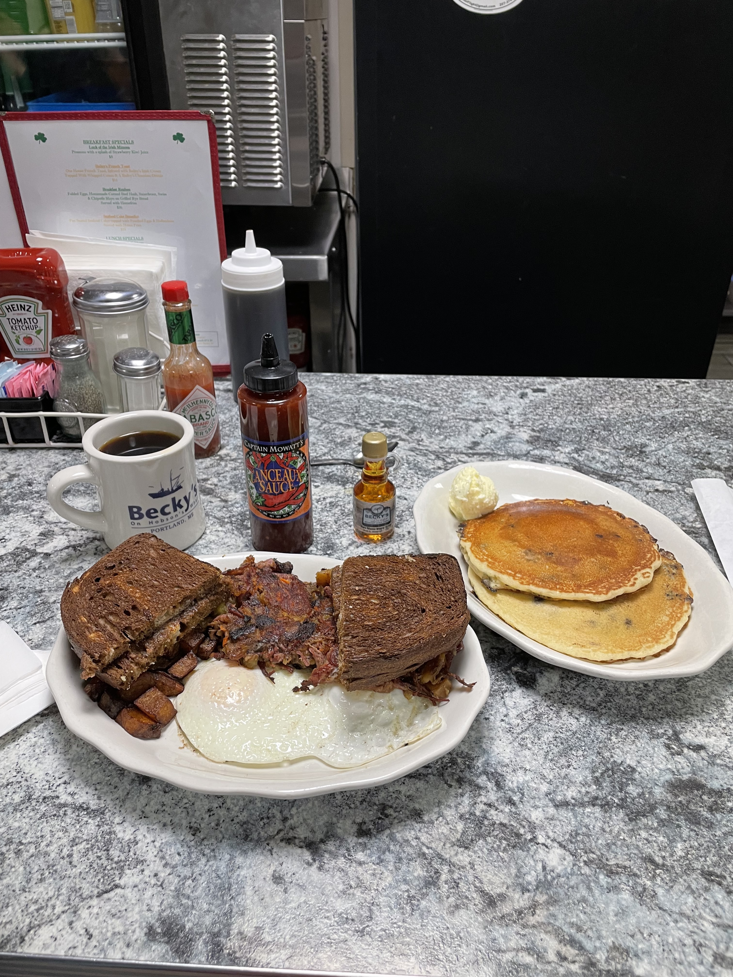 The other big taste of Maine was going to Becky’s Diner at six in the morning. Since it was the day after St. Patrick’s Day (a day I celebrated by drinking an Allagash Coolship Charente and Allagash House beer in my hotel room), I got the house corned beef hash, Maine blueberry pancakes (which are apparently Maine state tradition), Maine maple syrup, and too much other food. It was a hearty way to start a busy final day of my trip. The other food during the trip was mainly at the hotel during the conference, which was unexpectedly tasty as well.